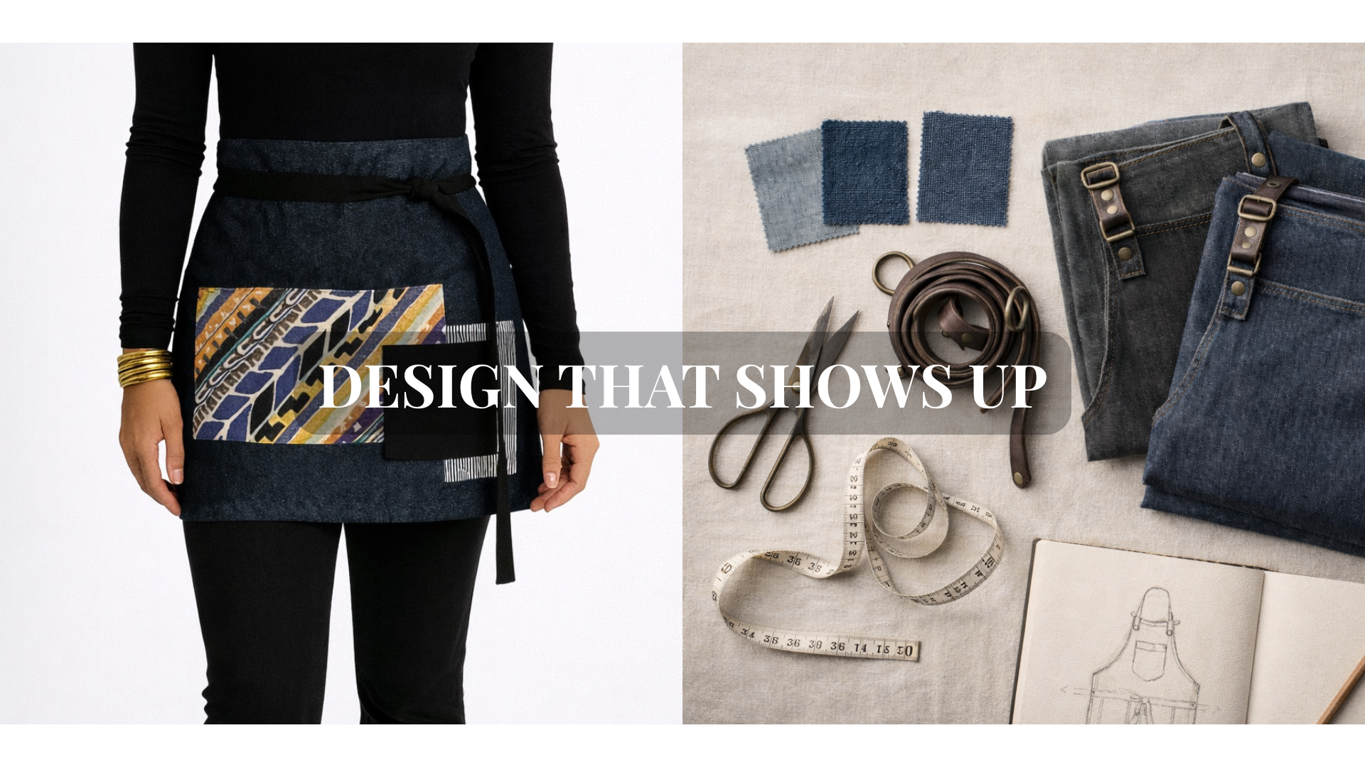 We design custom aprons through a thoughtful process that considers your space, brand, identity, and daily workflow.